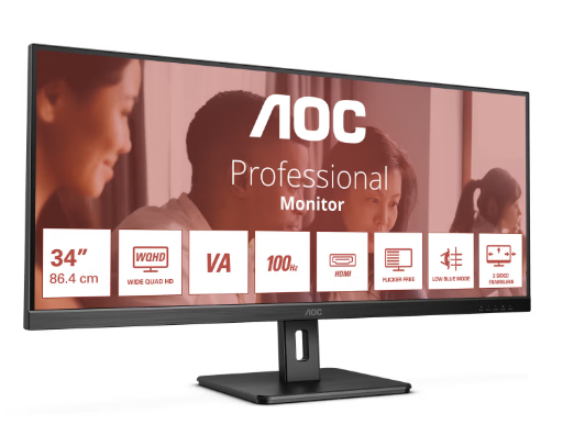 Produktinformationen "AOC U34E2M TFT 86,4cm (34 Zoll) 21:9 300cd/m2 100Hz 3440x1440 2xHDMI DP, schwarz"