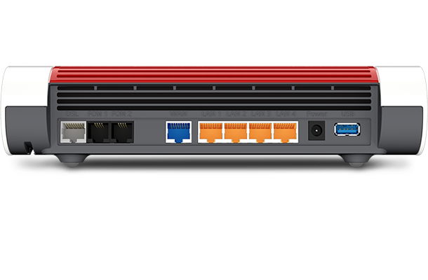 Anschlüsse | - 2 leistungsstarke USB-3.0-Anschlüsse für Speichermedien (NAS), Netzwerkdrucker und Mobilfunksticks - 4 ultraschnelle Gigabit-LAN-Anschlüsse für Computer, Fernseher und andere Netzwerkgeräte - 1 Gigabit-WAN-Anschluss - 2 analoge Telefonanschlüsse |