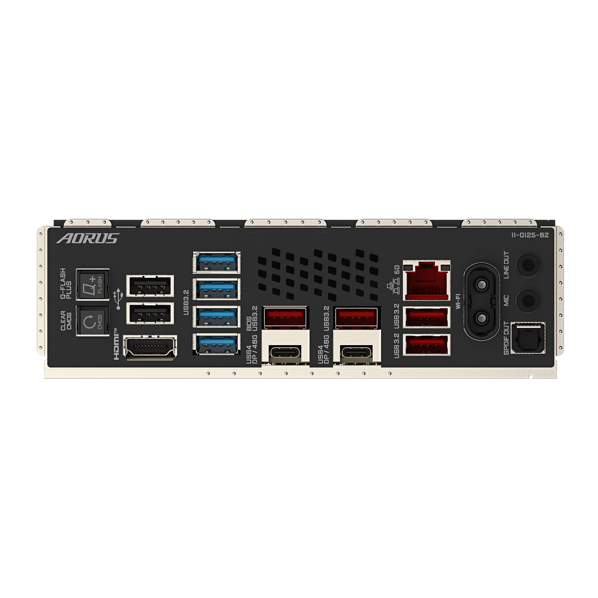 | Rückseite I/O Panel | 1 x Q-Flash Plus button 1 x Clear CMOS button 1 x reset button 1 x power button 1 x HDMI port (Note) 2 x USB4® USB Type-C® ports (DisplayPorts (Note)) 1 x USB Type-C® port, with USB 3.2 Gen 2 support 1 x USB Type-C® port, with USB 3.2 Gen 2x2 support 7 x USB 3.2 Gen 2 Type-A ports (red) 2 x RJ-45 ports 2 x antenna connectors (2T2R) 2 x audio jacks 1 x optical S/PDIF Out connector (Note) Actual support may vary by CPU. |