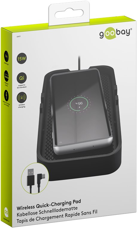 | Beschreibung | Wireless Charger für Smartphones und Geräte, die den Qi-Standard unterstützen Das Ladepad ist perfekt, um komfortabel im Auto zu laden - einfach das Smartphone in die rutschfeste Schale legen und induktiv laden. Ganz ohne lästiges Ein- und Ausstöpseln von Ladekabeln und ohne Verrutschen des Handys während der Fahrt. Das Induktions-Ladegerät lässt sich ganz praktisch überall ablegen, z. B. im Armaturenbrett, auf der Mittelkonsole oder auf der Rückbank. Ideal für den Energie-Boost unterwegs. - Die Ladematte ist im Auto die praktische Alternative zum USB-Ladekabel, perfekt für die Mittelkonsole oder das Armaturenbrett - Einfach induktiv laden: Smartphone oder Qi-fähiges Gerät auf das Ladepad auflegen und der Ladevorgang beginnt automatisch - Durch das rutschfeste Silikonmaterial liegt das Gerät auch während der Fahrt sicher, ohne zu verrutschen - Multifunktional als Handyhalter: Smartphone quer in die beiden Kerben einlegen, um die Ladestation als Handyständer für Navigation oder beim Videocall zu verwenden - Schnellladefähig: Wird ein Quick-Charge-Kabel angeschlossen, lädt die Ladematte doppelt so schnell wie Standardladegeräte (Standardkabel ohne Quick Charge enthalten, 1 m, USB-A auf USB-C™) - Qi-Technologie wird von gängigen Herstellern und Modellen unterstützt, z. B. Apple, Samsung, Sony, Huawei, LG oder Xiaomi, Apple iPhone, Samsung Galaxy S - Die integrierte Schutzelektronik schützt das Induktionsladegerät vor Überladung, Überspannung, zu hohen Temperaturen und Fremdkörpern |