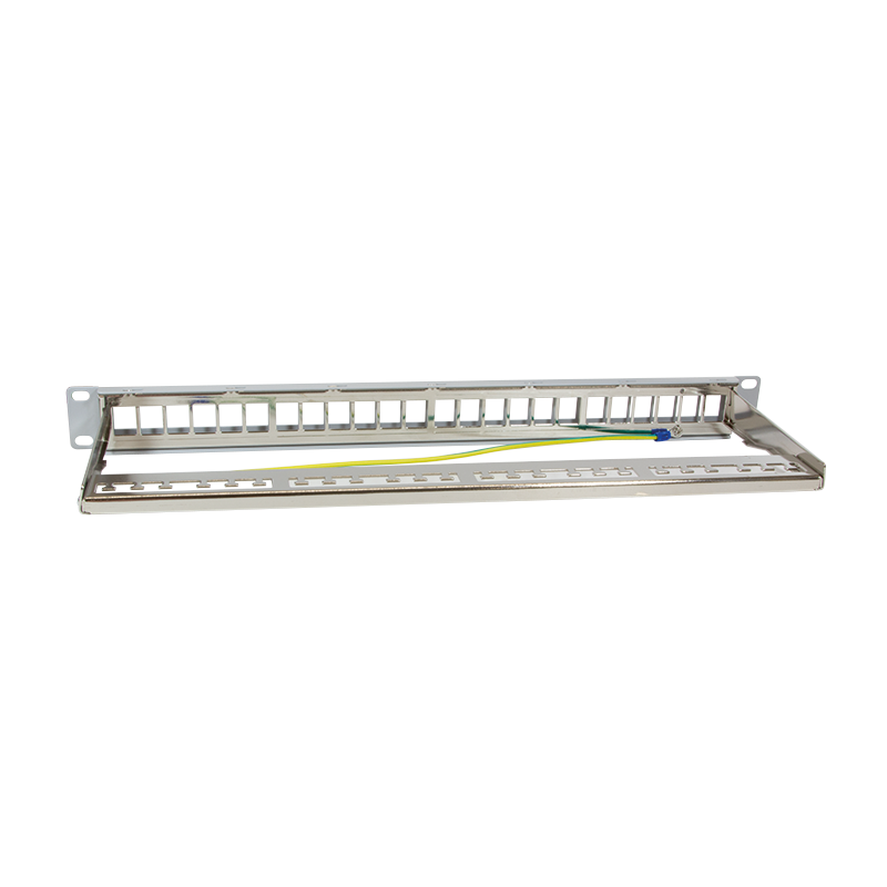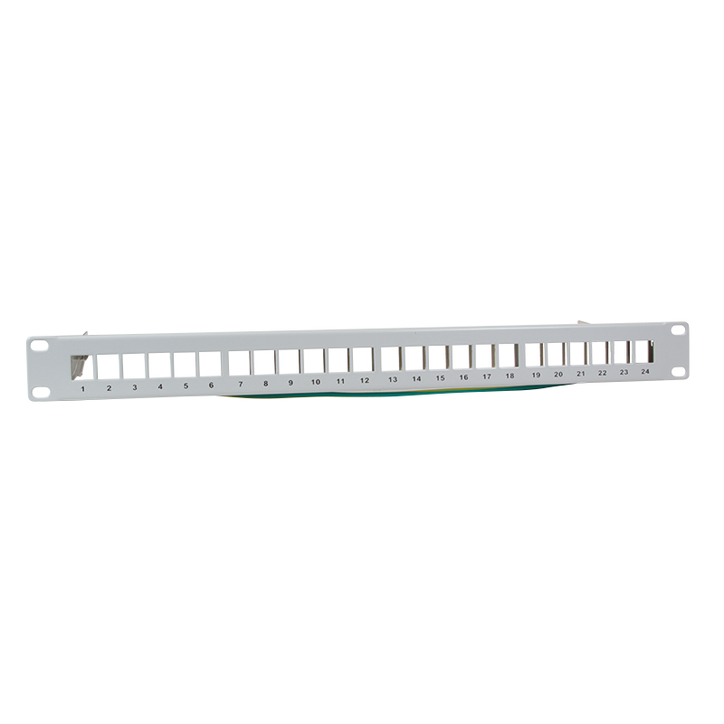 Keystone Patchpanel 24 Keystone Buchsen für 19" Industrie-Gehäuse / 1HE, geschirmt, hellgrau