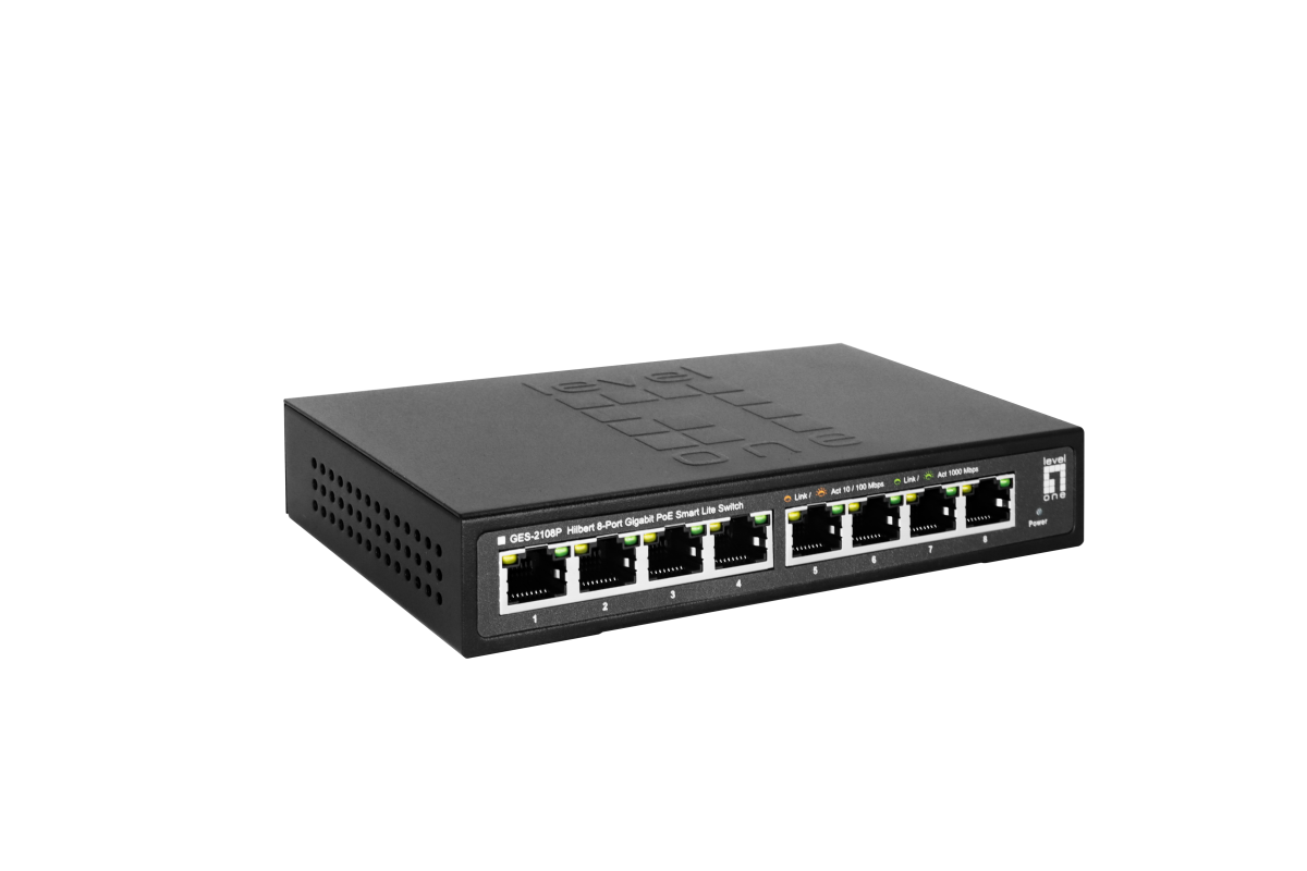 Produktinformationen "LevelOne GES-2108P Hilbert Gigabit Switch 8-Port (8xPoE+ 112W) 10-1000Mbps, Desktop Metallgehäuse"