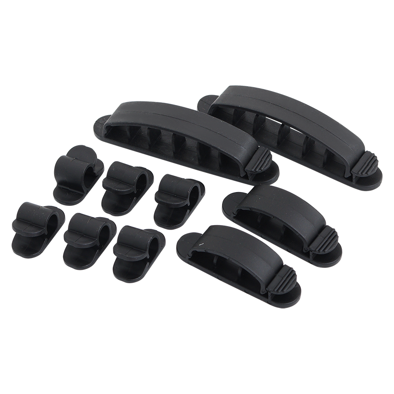 Merkmale | - Kabelbefestigung mit doppelseitigen Klebeband - Zur Befestigung an glatten Flächen - Geeignet zum Ordnen von Kabeln - Einfaches Öffnen und Schließen des Deckels - Einfache Befestigung an Tischen, Leisten und Ecken - Im Set: 10 Kabelbefestiger in 3 Ausführungen - Farbe: Schwarz |