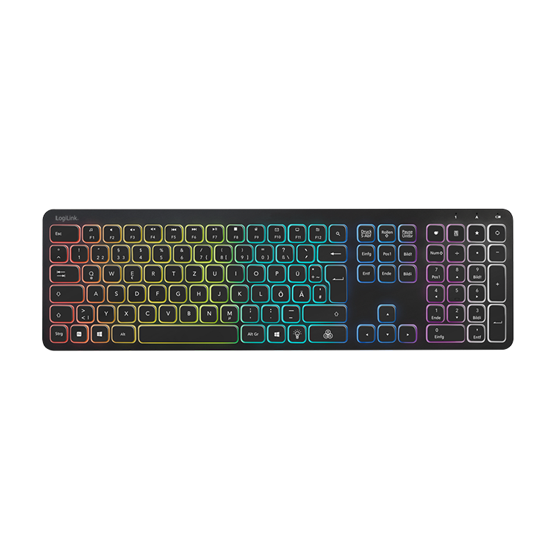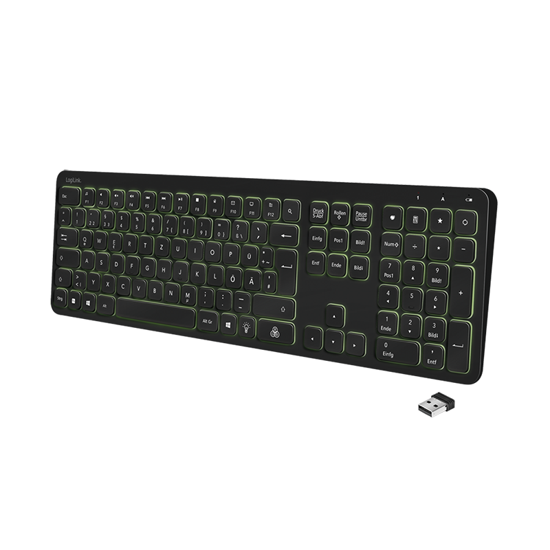 LogiLink Tastatur mit Hintergrundbeleuchtung USB Funk 2.4 GHz, deutsch, schwarz