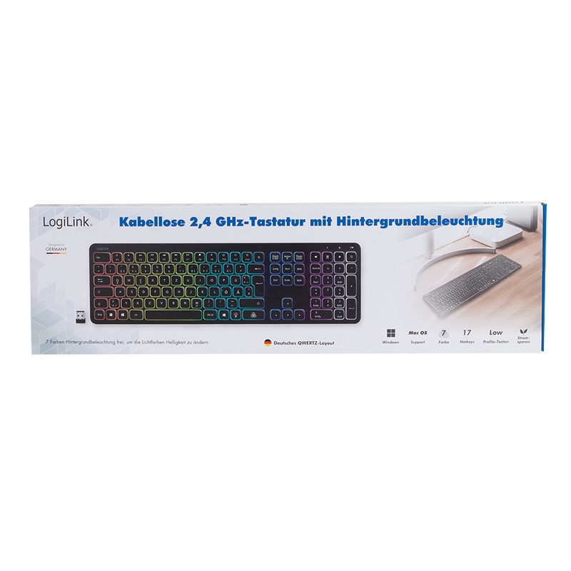 Produktinformationen "LogiLink Tastatur mit Hintergrundbeleuchtung USB Funk 2.4 GHz, deutsch, schwarz"