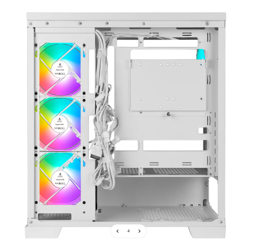 Produktinformationen "Miditower AzzA Cove 570B Gaming Gehäuse ohne Netzteil, USBC/Audio, 4x ARGB-Lüfter, weiss"