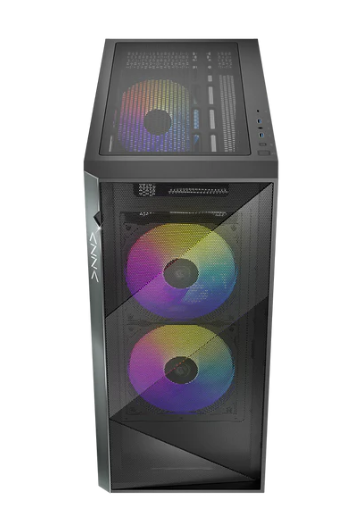 Miditower AzzA Photon Gehäuse ohne Netzteil, USB-A+C/Audio, 3x RGB-Lüfter, schwarz