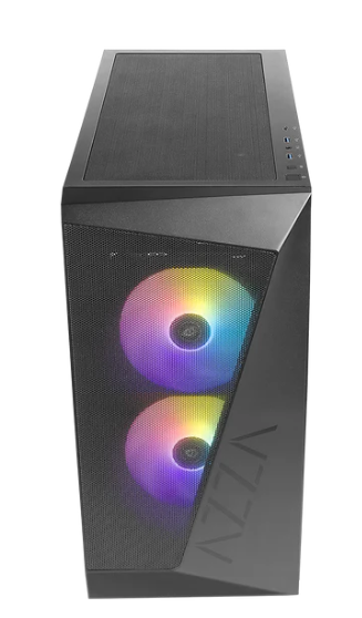 Miditower AzzA Reaver Gehäuse ohne Netzteil, USB-A+C/Audio, 3x RGB-Lüfter, schwarz