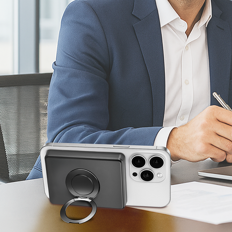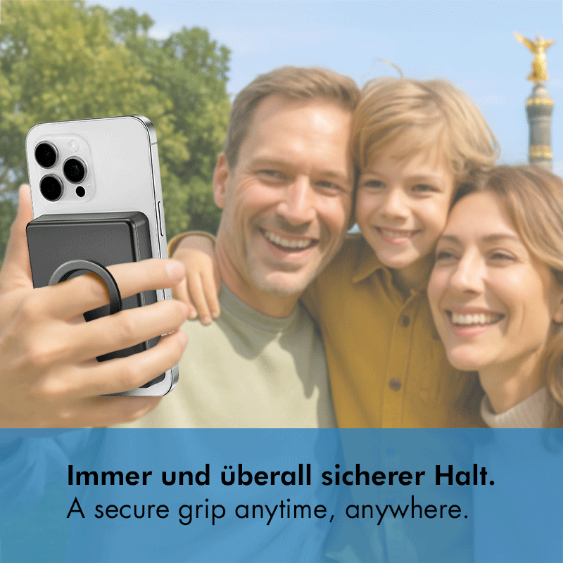 | Merkmale | - Magnetisch befestigte Powerbank mit Fingerring-Halter/Ständer - Kapazität: 10.000 mAh (3,7 V Li-Polymer) - Kabelloses Laden: 5 W / 7,5 W / 10 W / 15 W (max.). - USB-C-Ausgang: PD 3.0 bis zu 20 W (5 V/3 A, 9 V/2,22 A, 12 V/1,67 A). - USB-C-Eingang: Bis zu 18 W - MagSafe-kompatible Magnetfixierung für sicheren Halt und effiziente Induktion - 360° rotierbarer und 90° klappbarer Metallständer - Geräteschutz: Überladung, Entladung, Überstrom, Überspannung, Überhitzung, Kurzschluss - LED-Anzeige für Kapazitäts- und Lademodus - Gehäusematerial: Wärmeleitfähiges Aluminium, ABS - Gewicht: 0.171 kg - Höhe: 1.6 cm - Breite: 6.7 cm - Länge: 10.3 cm |