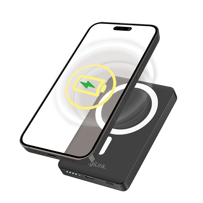 Produktinformationen "Mobile Magnetic Powerbank, 10.000mAh, USB-C, PD 20 W, Qi wireless Laden, schwarz"