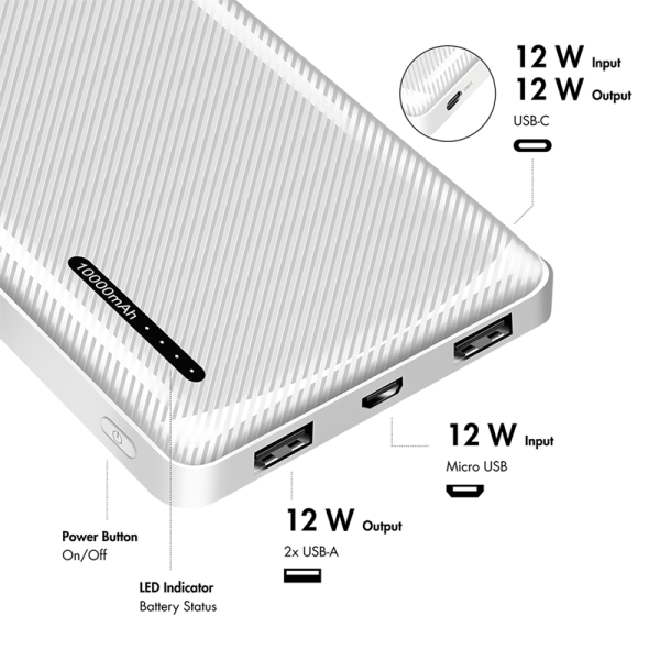 Produktinformationen "Mobile Powerbank 10.000 mAh, 2 x USB-A + USB-C Ausgang, weiß"