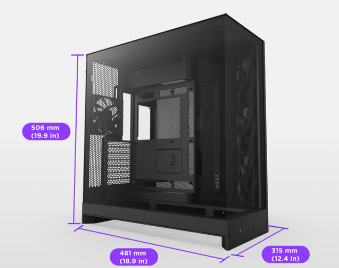 | GPU-Länge | Bis zu 459 mm (mit unter 56 mm dicken Lüftern vorn rechts) Bis zu 410 mm (mit 56 mm dicker 420 mm AIO + Lüftern vorn rechts) |