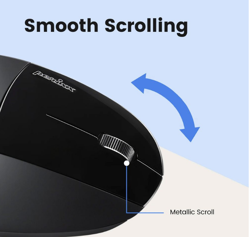 Merkmale | - Maus mit ergonomischen Prinzipien - Vertikales Maus-Design fördert die natürliche Handschüttel-Position, um das Verdrehen des Unterarms zu verhindern, für weniger Muskelbelastung und bessere Haltung - 3 kabellose Verbindungen - tragbar ohne Kabelaufwand, ausgestattet mit drei drahtlosen Verbindungsmethoden (kabellos 2,4 G, Bluetooth 5.0 und Bluetooth 3.0), kann mit drei verschiedenen Geräten verbunden werden, die die aufgeführten drahtlosen Verbindungen unterstützen - Bequeme Form - kombiniert mit gummierter Beschichtung an der Seite der Maus, die sich großartig anfühlt, Griffigkeit verleiht und Komfort bietet - Hochpräzise Maussteuerung - Präzise Tracking-Bewegungen und präzise Navigation mit dem optischen Perixx-Sensor. Ändern Sie die DPI-Empfindlichkeit mit leicht erreichbarem Bedienknopf. 3 DPI-Stufen der 800/1200/1600 - Kompatibilität - Windows OS, Linux Ubuntu 16.04, Chromebook, iPadOS, Android, Amazon Fire Tablet. Teilweise Kompatibilität mit MacOS (Vorwärts- und Rückwärtstasten sind nicht für MacOS verfügbar). |