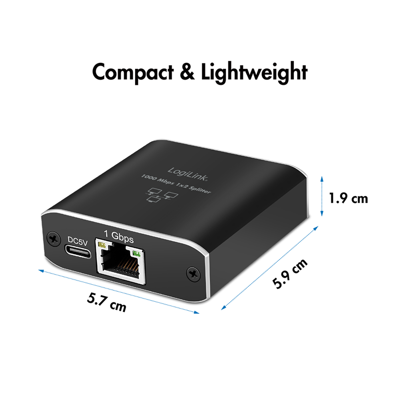 Bezeichnung | Gigabit-Ethernet-Splitter 1 auf 2, 1000 Mbit/s, mit USB-Stromversorgung |