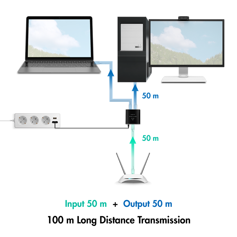 RJ45 Netzwerk Splitter 1 auf 2, 1000 Mbps, mit USB power