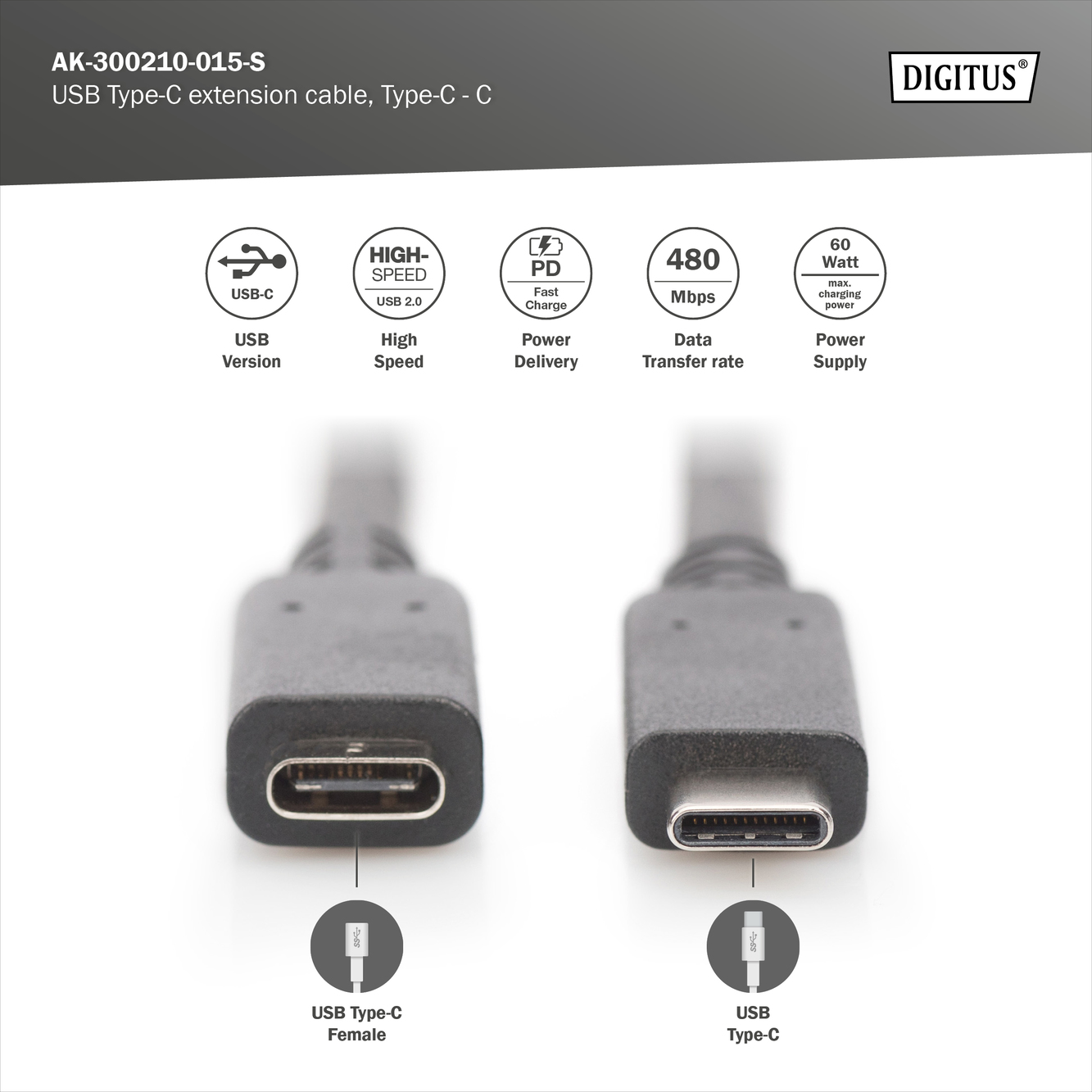 Produktinformationen "USB C/C Verlängerung 1,5 M. - USB Typ C-Stecker > USB Typ C-Buchse, schwarz"